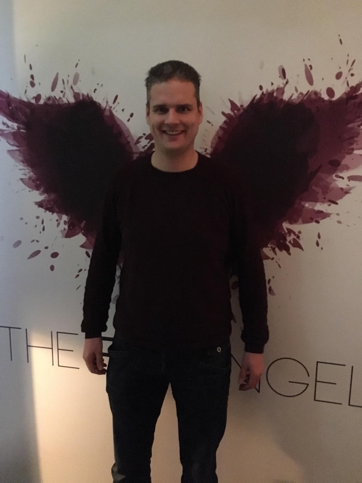 Na de snacks is dan eindelijk tijd voor de verassing van de avond. Rik blijft zijn mond aardig dicht houden, dus toen we weer buiten in de regen moesten lopen, hoopten we allen alleen maar dat het restaurant lekker dichtbij is. En dat is het gelukkig, na een paar minuutjes lopen staan we opeens voor de deur van The Fat Angel. De meeste van ons hadden al verhalen gehoord via via dat je hier dus echt kon genieten van allerlei heerlijks. Dus onze verwachting werd alleen maar hoger. Bij binnenkomst worden we direct gegroet door de eigenaar van The Fat Angel. De beste man neemt de tijd om zich even aan iedereen voor te stellen, maar zo snel dat hij zich voorstelde zo snel zijn we allen zijn naam alweer vergeten. We worden prominent midden in het restaurant aan een tafel gezet, recht tegenover de open keuken. Vanavond mogen we dus eens toekijken hoe al eens eten wordt voorbereid. Hoe kan de avond in zo’n setting nou beter beginnen dan met ons gebruikelijke flesje wijn vooraf. Tijdens het bestellen van de wijn komen we er al snel achter dat we hier in een ongebruikelijke setting terecht zijn gekomen. Klaarblijkend is het bestellen van wijn nogal moeilijk in dit etablissement. Mike doet zijn best om zo makkelijk mogelijk te zijn, alleen kaatst de ober net zo hard allerlei vragen terug. Wat voor soort wijn? Waar moet ie naar smaken? Wat wil je nou? Wat wil je? Na wat minuutjes loopt de ober maar gefrustreerd aan om vervolgens terug te komen met de gebruikelijke fles witte droge wijn. Tegelijkertijd dat de wijn op onze tafel wordt ingeschonken worden we ook getrakteerd op de amuse. Voordat we ook maar een menukaart in onze handen hebben gekregen mogen we ons al tegoed gaan doen aan de eerste lekkernij uit de keuken. Een bolletje van geitenkaas aangekleed als een wortel. Een aparte ervaring, maar we mochten hem als zo in onze mond schuiven wat heel de ervaring alleen maar beter maakte. We beginnen langzaamaan honger te krijgen dus laat de menukaart maar komen, zodat we een gangen menu kunnen bestellen.