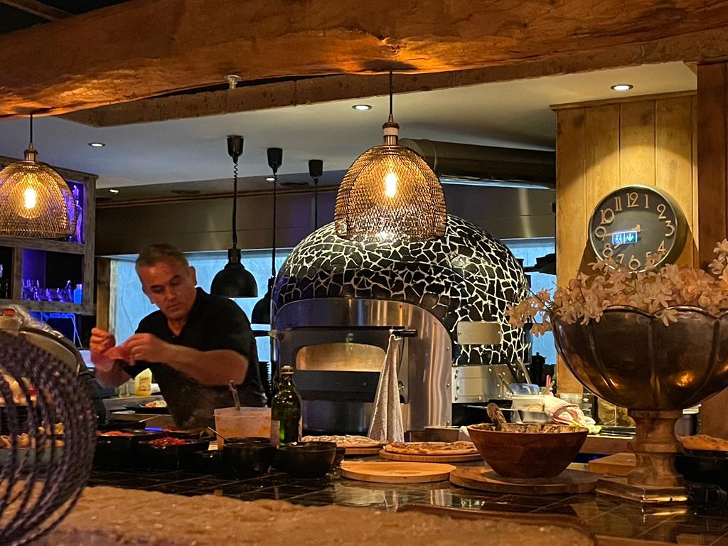 Vanuit de pub is het even de straat oversteken naar Antonio's, dus precies op tijd lopen we het terras op. Mike heeft de afgelopen weken zijn best gedaan om de blog weer overal te pushen, blijkbaar is het bij Antonio's aangekomen, want we krijgen weer de grote centrale tafel voor de ingang van het restaurant. Mike heeft met de tafel nogal wat moeite, normaal stormt deze jongen als een van de eerste naar binnen om een mooie plek met overzicht uit te zoeken. Vandaag was hij er niet helemaal bij en komt als laatste binnen om met zijn rug naar al het moois te zitten. De jongen krijgt bijna een stijve nek van het omkijken naar al het moois aan de bar. Maar hij heeft er maar mee te leven.
