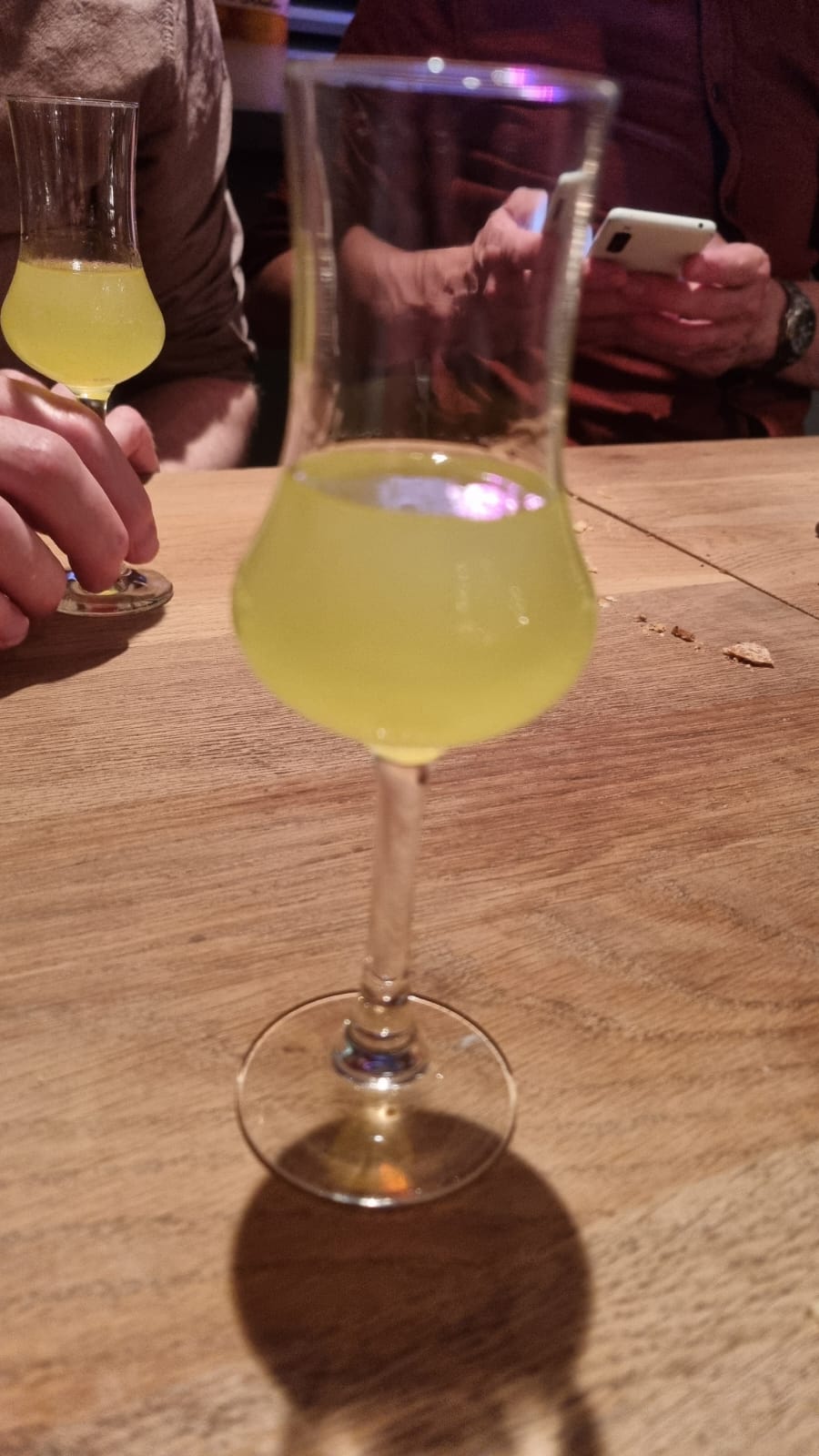 De avond op deze fijne locatie werd afgesloten met een selectie van limoncello, amaretto, koffie en espresso, welke vergezeld van macarons, een malteser-achtige snoepje en - heel uniek - een reageerbuisje met wat misschien een zure variant van ghb bevatte. Deze kleine zoetigheden met een vloeibaar geel zuurtje vormden een perfecte afsluiting van een memorabele culinaire ervaring. Het zachte geroezemoes van de andere gasten en de vriendelijke bediening maakten de sfeer compleet.