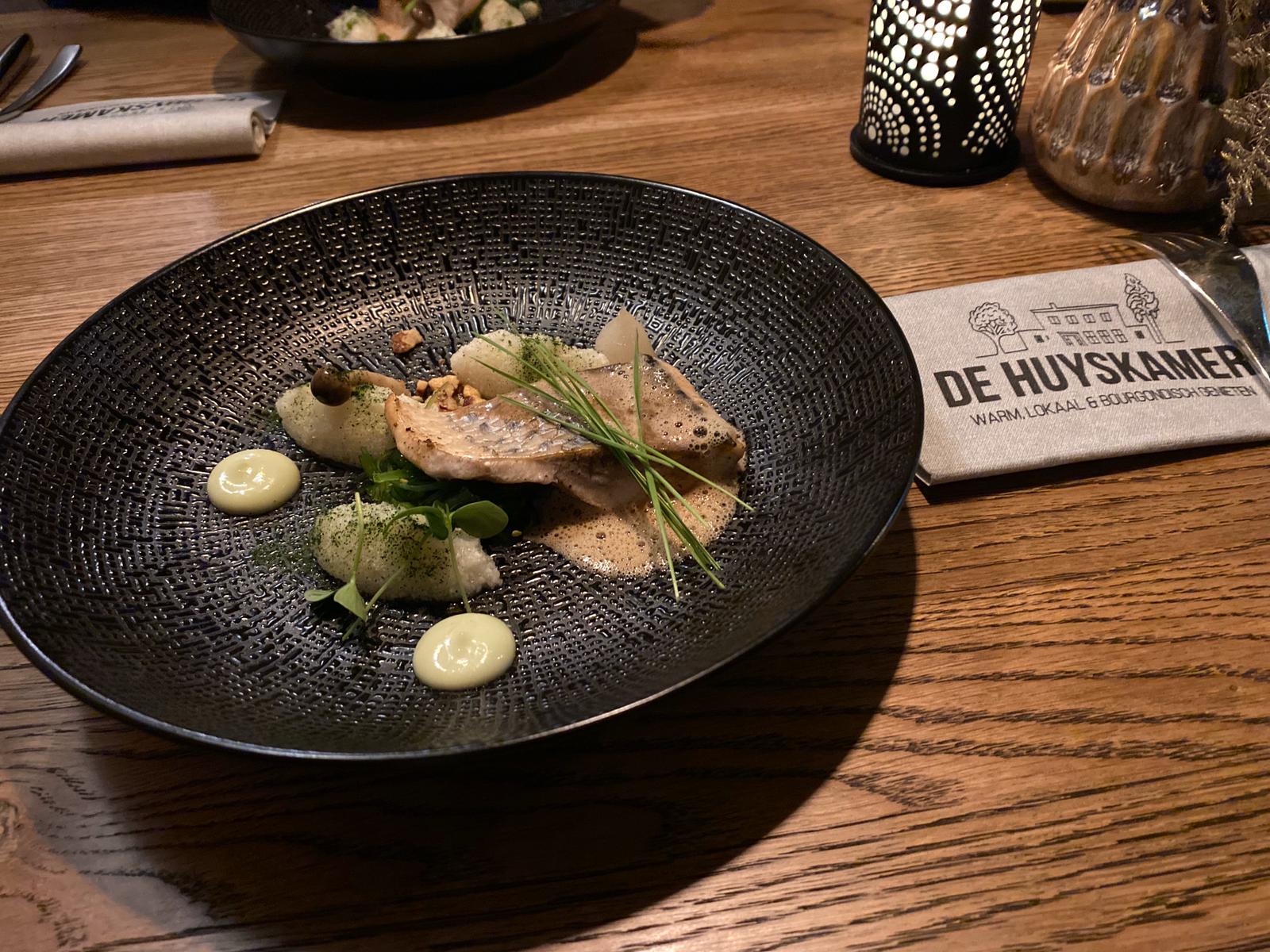 Nick voelt zich alweer snel in zijn element en als zelf aangesteld vaste fotograaf gaat hij direct helemaal los. Groepsfoto, portretten en foodfoto's, niks is voor deze man een brug te ver. Dion is als een leek nog uitgebreid de menukaart aan het besturen, terwijl de rest al in de startblokken zit om aan het verrassingsmenu met wijnarrangement te beginnen. Niet snel na de champagne is het al tijd voor de eerste gang en de daarbij behorende lekkere wijn. Niet veel later vliegen de eerste absurde verhalen al over de tafel. Gelukkig zitten we deze keer in een hoekje en niet midden in het restaurant en is Rik vandaag de chauffeur. De andere gasten in het restaurant kunnen rustig ademhalen. De jongen met de dronken basstem is vandaag dus niet aanwezig. Dion past zich ondertussen snel aan. Hij heeft zijn wankele beginfase overbrugt en begint ook al snel de ene na de andere lachwekkende anekdote te vertellen. De een nog vager dan dat de andere seksistisch is. Maar dat maakt niet uit, precies daarom zijn we samen.