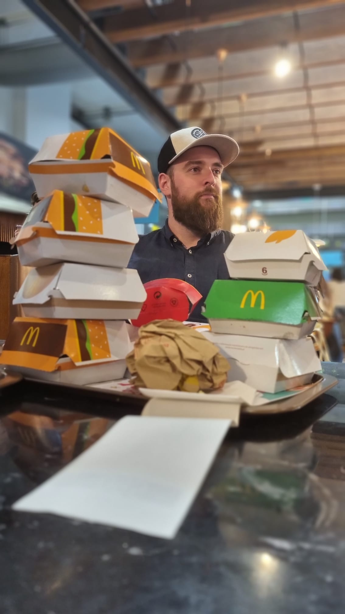 Gelukkig vinden we een lekker plekje. Het meest premium plekje van het gehele vliegveld. In het winkeltje/restaurant, mooi centraal, uitzicht op alles en groot genoeg voor ons allen 6en. We zijn dus tevreden mensen. We hebben er ook plaats genomen en niet verplaatst. Dion heeft alleen eerst de volledige winkel leeggekocht om te eten, om daarna de McDonalds te plunderen. Dion heeft van die dagen dat hij maar kan blijven eten en vandaag heeft hij er echt een.