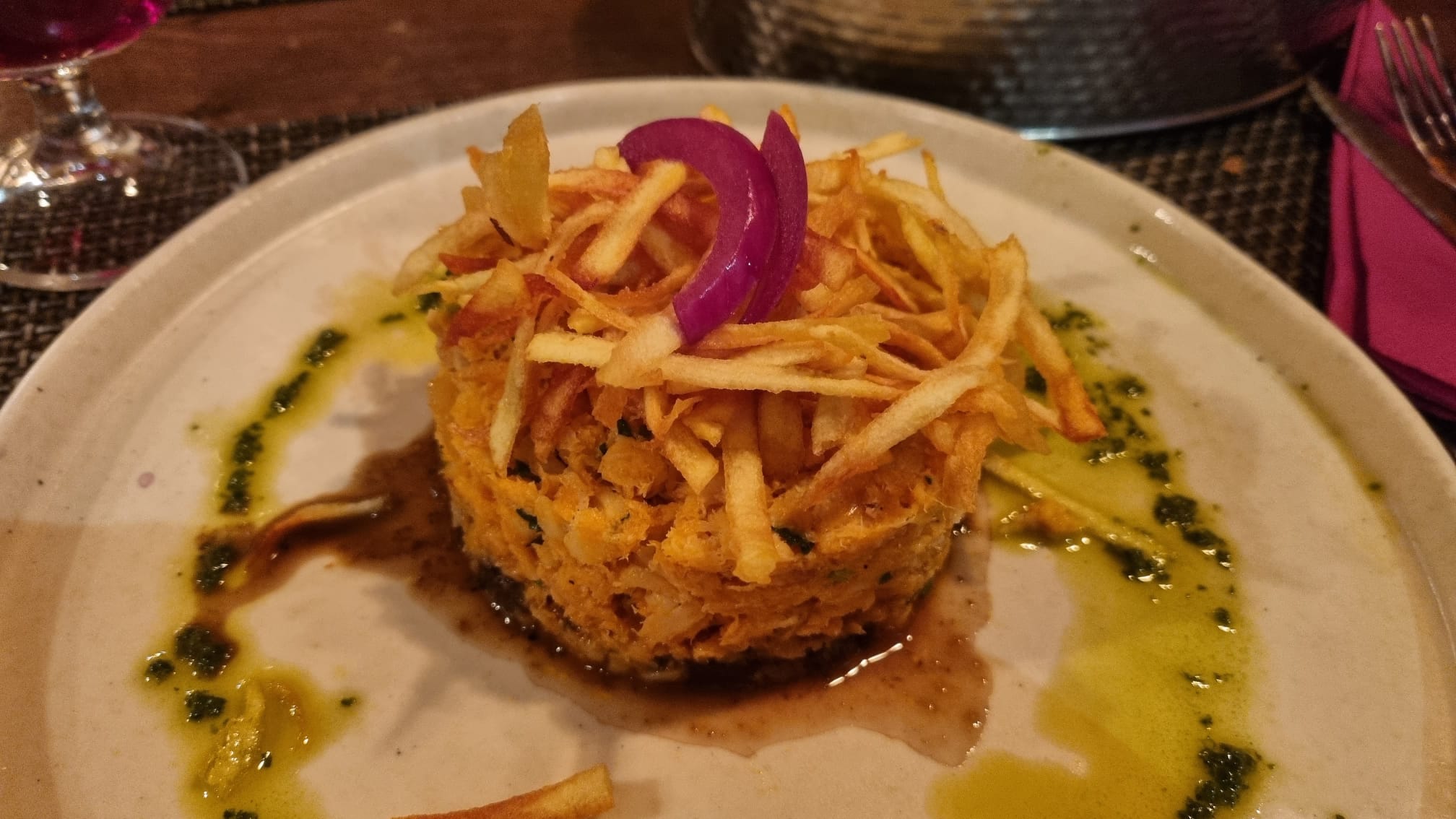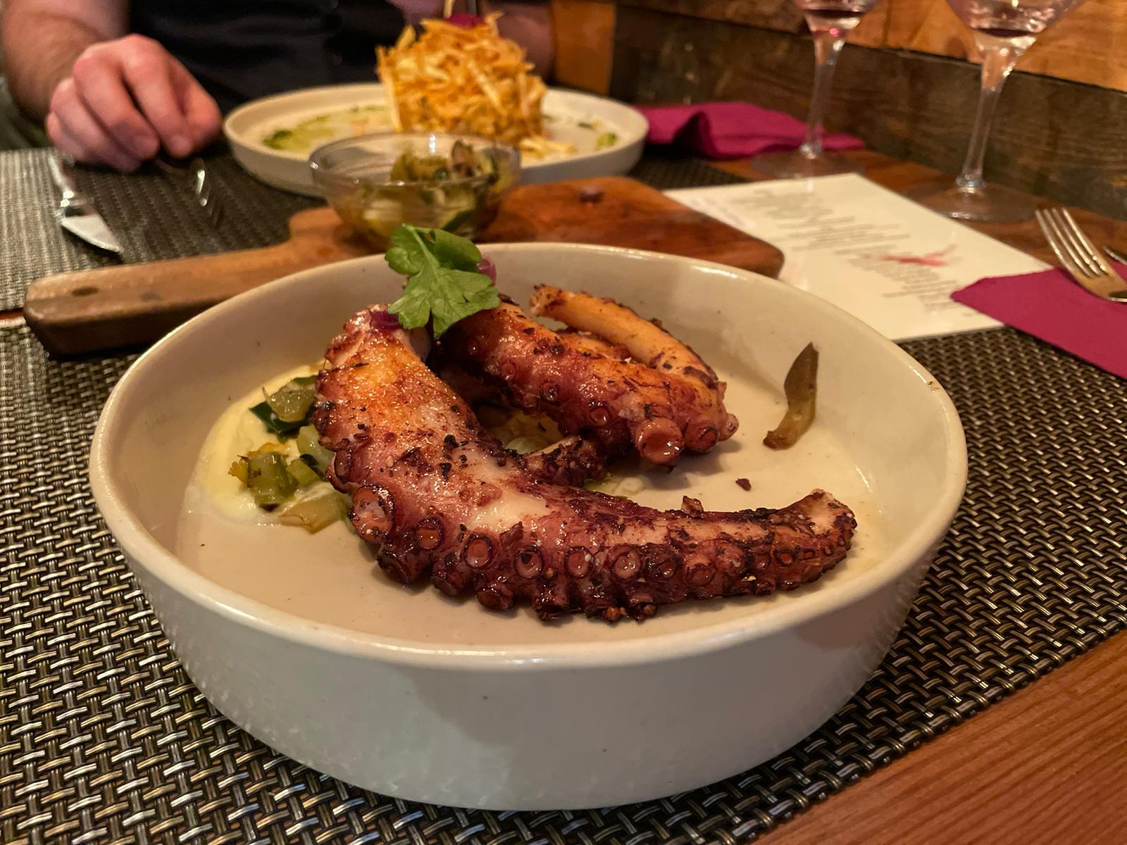 Na de voorgerechten komen er nog betere hoofdgerechten aan. Zonder dat we het wisten is dit restaurant waar we zomaar binnen zijn gelopen een schot in de roos. Lokale specialiteiten zoals octopus en kabeljauw zijn echt fantastisch. Dit terwijl de witvis pastei taartjes ook geweldig zijn. Zonder dat we het door hebben schiet de tijd voorbij. We beginnen door te hebben dat we er al langer aanwezig zijn als we weer eens onverschrokken om ons heen aan het staren zijn naar al het moois binnen. Er komt een stel binnen waar de dame zich voor ons uitgebreid posteert en we kunnen genieten van alles. We hebben pas echt door dat we al lang in het restaurant aanwezig zijn als de drank die we bestellen op begint te raken. Hiermee is ook een einde gekomen aan ons eerste etentje.