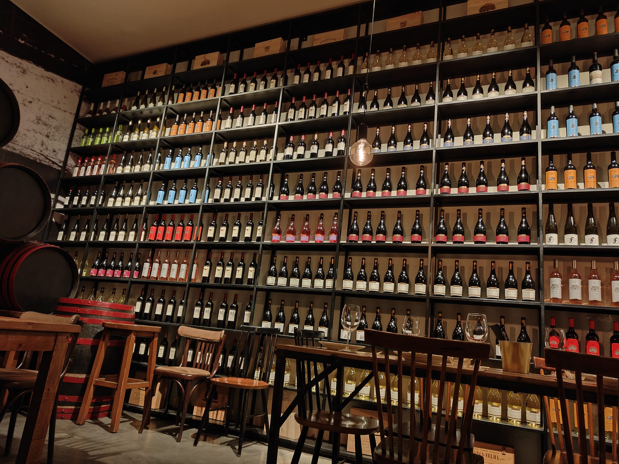 Dat het een gewillig restaurant is blijkt ook wel als we aan komen lopen er een een flinke wachtrij voor de deur staat. Tim als grote jongen heeft het na een aantal drankjes niet op even wachten en banjert al Nederland schreeuwend "We hebben gereserveerd" dwars door de rij heen om naar binnen te gaan en iemand van het personeel aan te tikken. De rest staat een beetje beschamend af te wachten wat er van gaat komen. Maar Tim krijgt het snel voor elkaar om iedereen binnen te loodsen. We worden achterin een erg mooi restaurant geplaatst. De naam ByTheWine komt ook wel naar voren, letterlijk overal waar je kijkt zie je flessen wijn staan. Wanden vol, het volledige dak is ermee versierd. Als we eenmaal plaats hebben genomen laten we ons door de ober volledig overtuigen voor de juiste fles wijn en we bestellen er maar meteen meerderen. Omdat hij anders zo vaak moet lopen. Gelukkig kan hij er erg om lachen en zal nog meerdere keren tijdens de avond langs komen om weer een aantal flesjes achter te laten voor ons. We wisten niet exact wat we van de kaart moesten denken, maar het blijkt een wijn en steak kaart te zijn. Dus tijdens het voorgerecht staat de tafel vol met allerlei heerlijks. Van biefstuk puntjes tot worstjes tot een hemelse buikspek. We zijn helemaal in ons element hier. We zitten heerlijk te genieten in een fantastisch restaurant met een berg wijn en vlees. Kan ons leven nog beter?